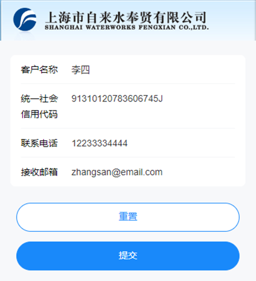 用户之前在我公司开具过水费增值税专用纸质发票,首次开具全电发票的,可选择上水奉贤公司营业厅(南桥人民中路280号、西渡闸园路229号、奉城城大路10号)其中一家柜台进行注册,带好被委托开票人身份证、单位委托开票证明(加盖公章)。