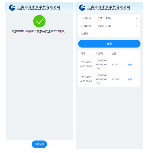 开票成功,稍后电子邮箱会发送到您的邮箱。点击下方开票记录,可查看已经开过的发票