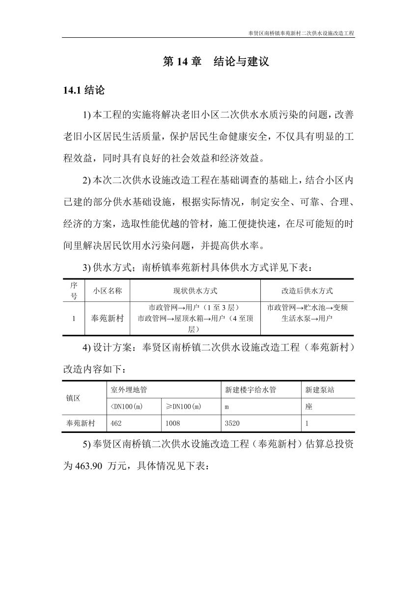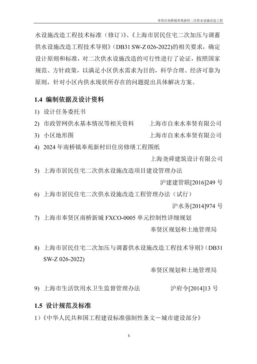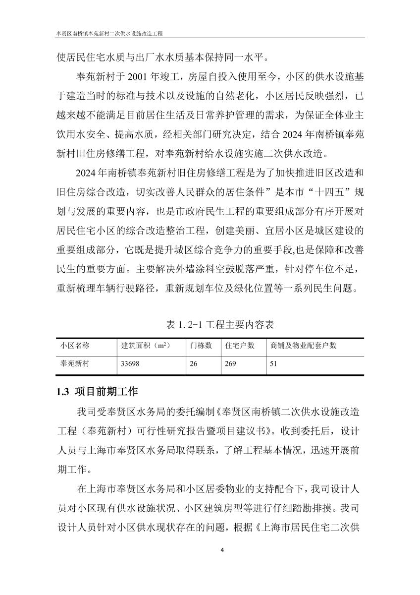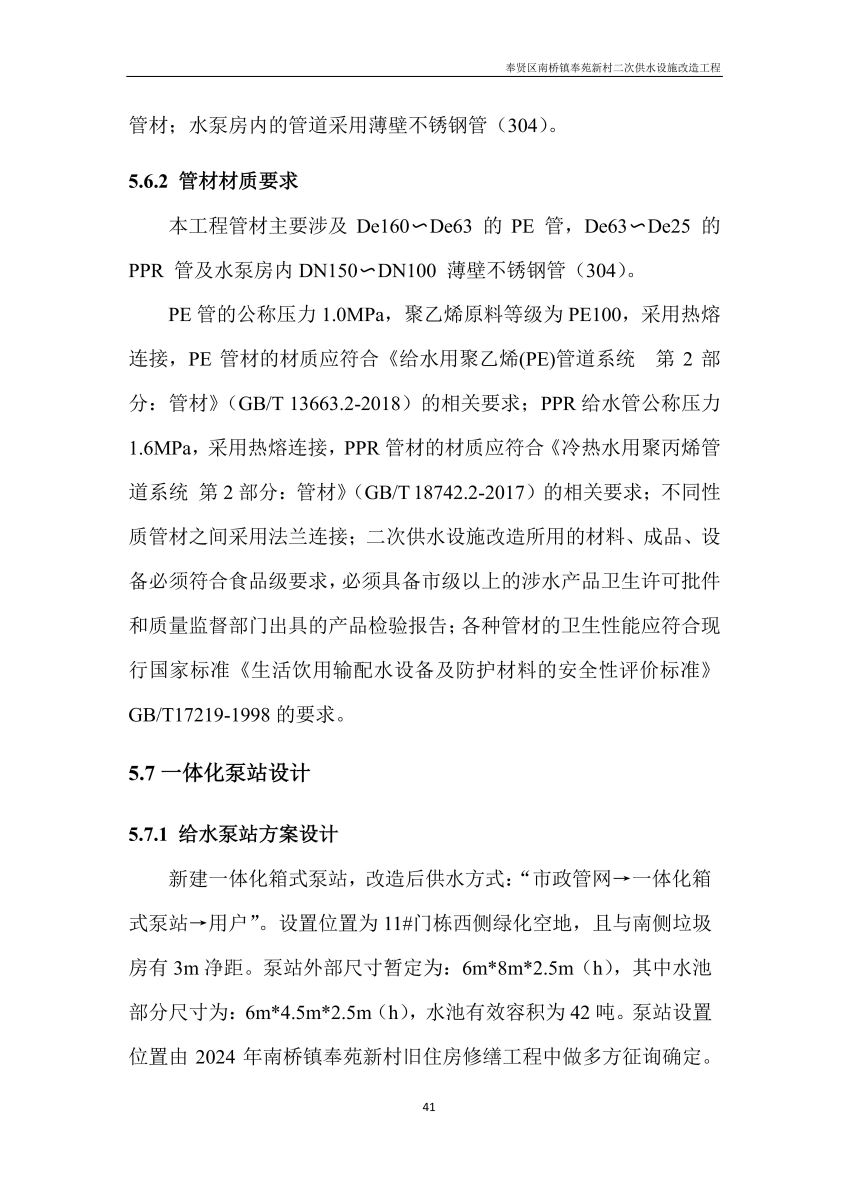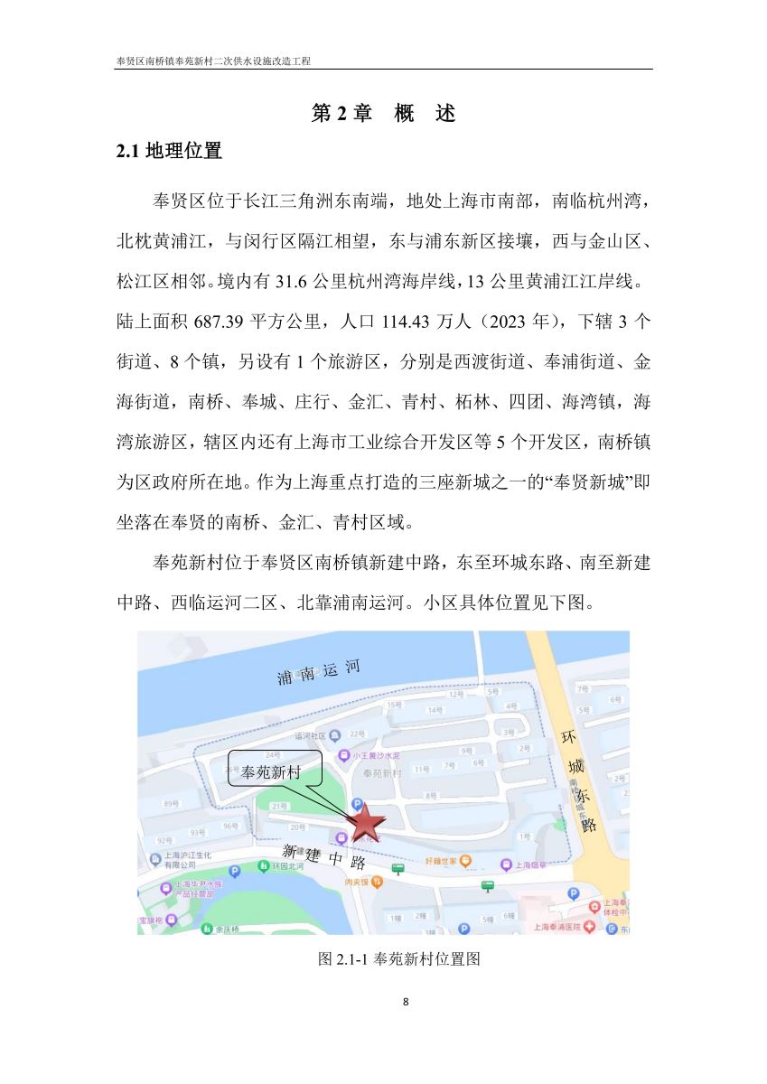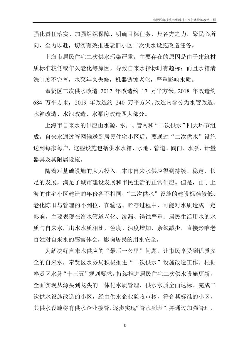 奉贤区南桥镇奉苑新村二次供水设施改造工程设计文件公示