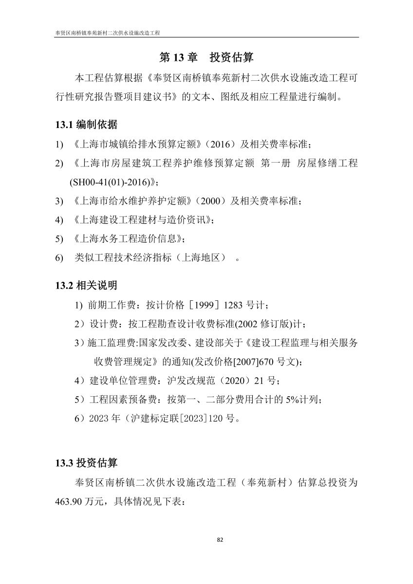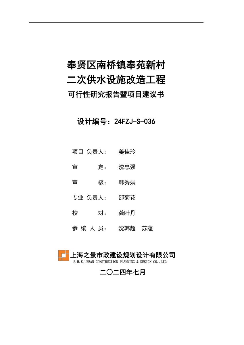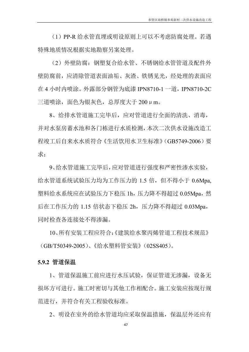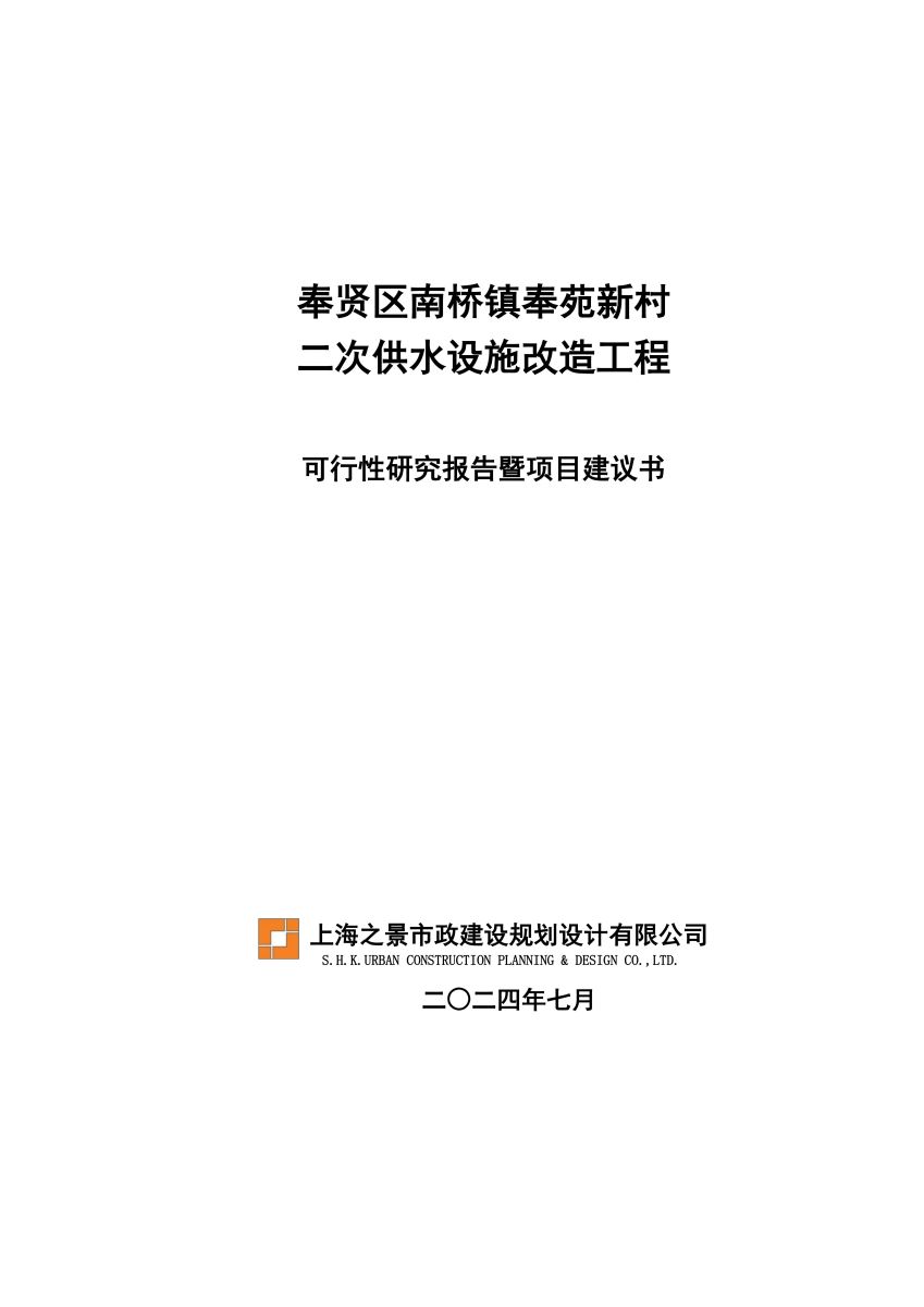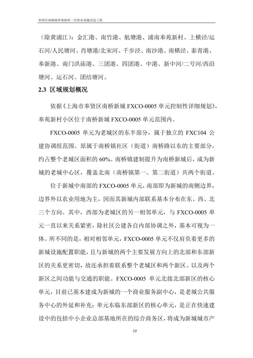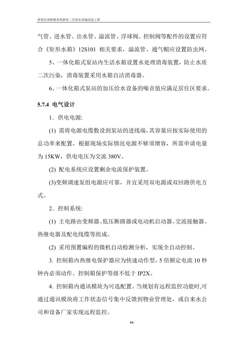 奉贤区南桥镇奉苑新村二次供水设施改造工程设计文件公示
